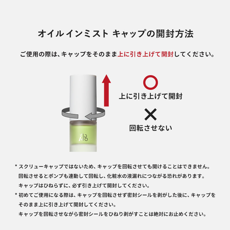 - Step 1 ご使用前にボトルを数回振り、オイルと美容液をまんべんなく混ぜてください。