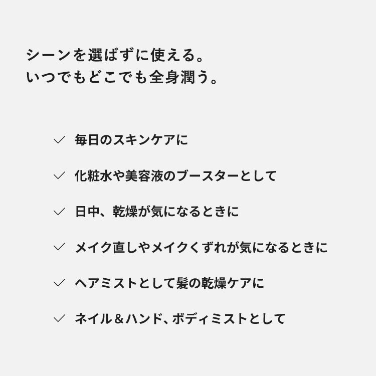 - 全身潤う、オールラウンドなミスト